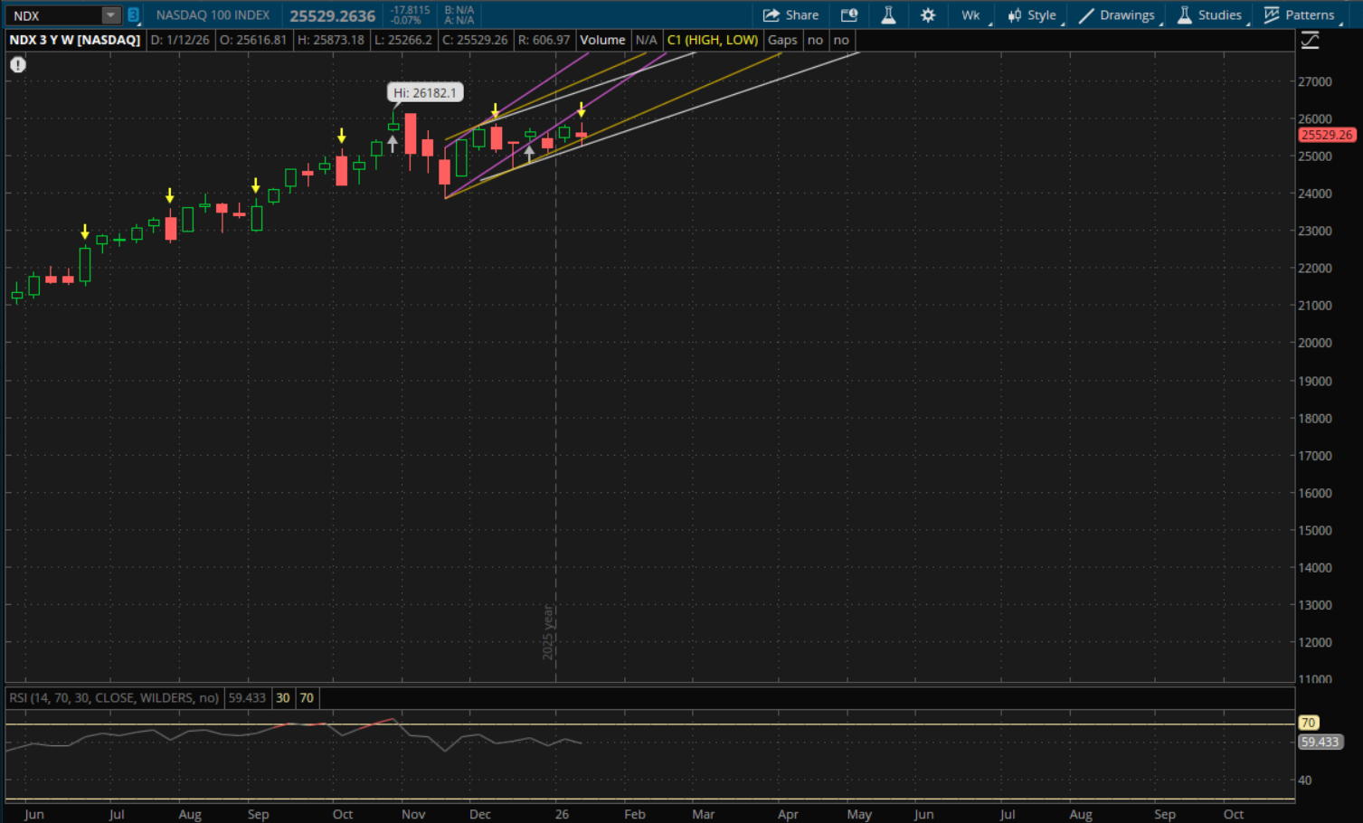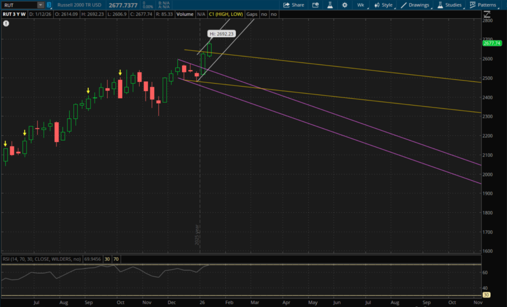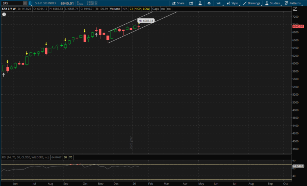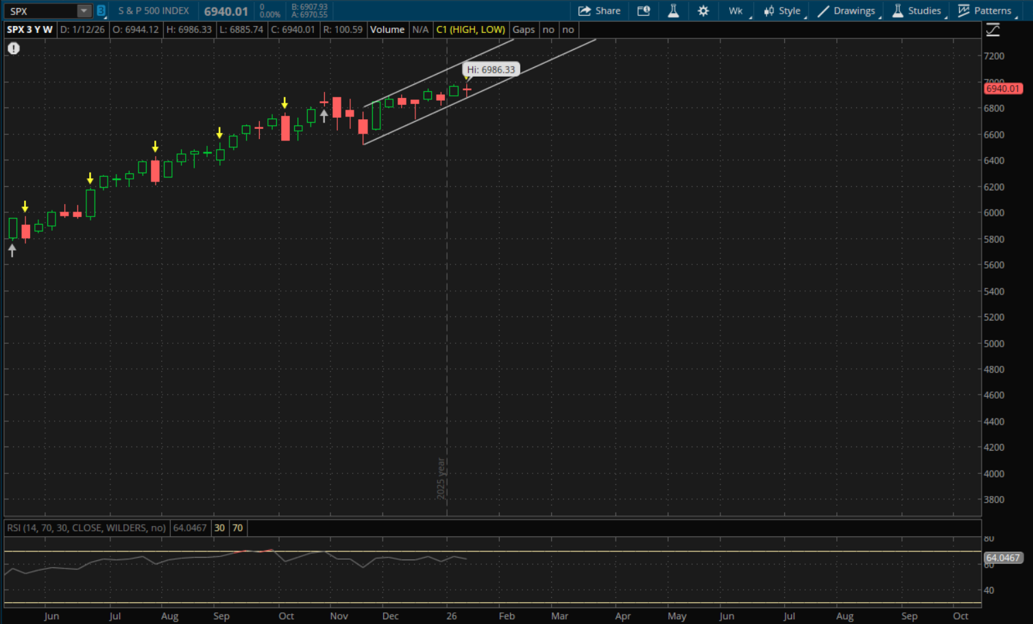 The markets are closed tomorrow for Martin Luther King Jr. Day, but futures are open tonight and they are all they are all down around 1% for ES (S&P), RTY (Russell 2000) and NQ (Nasdaq) after President Trump threatened tariffs on European NATO countries that were backing Denmark against the United States' push to acquire Greenland. Trump on Truth Social said that he will impose a 10% tariff starting February 1st and it will increase to 25% by June 1st unless a deal is reached for Greenland. He said that the tariffs would apply to the following 8 nations: Denmark, Norway, Sweden, France, Germany, the U.K., the Netherlands and Finland. The EU responded over the weekend saying they are weighing retaliatory measures including tariffs and more serious economic sanctions against the U.S. if Trump were to follow through with this tariff threat.