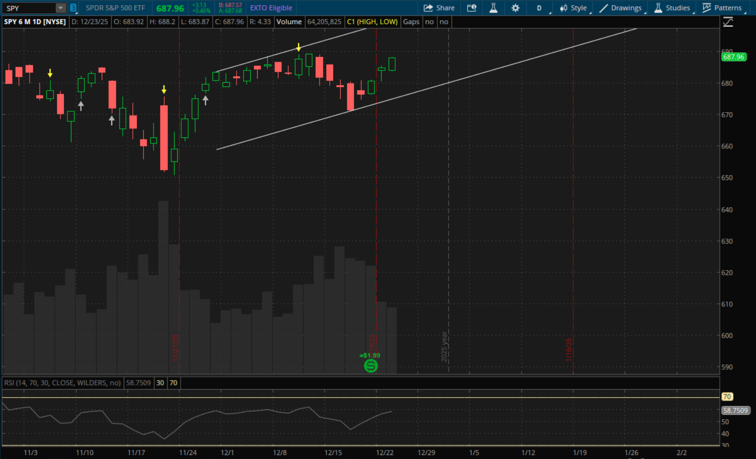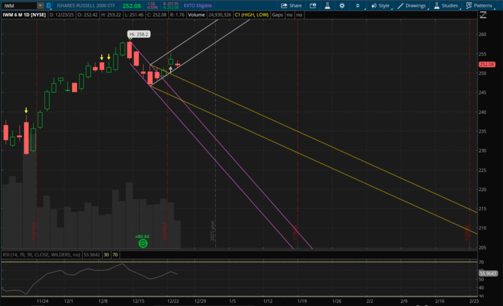 As for today, small caps lagged the rest of the markets significantly as IWM closed down 0.59% while QQQ closed up 0.47% and SPY closed up 0.46%. Tomorrow we have a half trading day for Christmas Eve with markets closing at 1:00 PM Eastern and markets are closed all day on Thursday for Christmas so I wouldn't expect much to happen tomorrow.