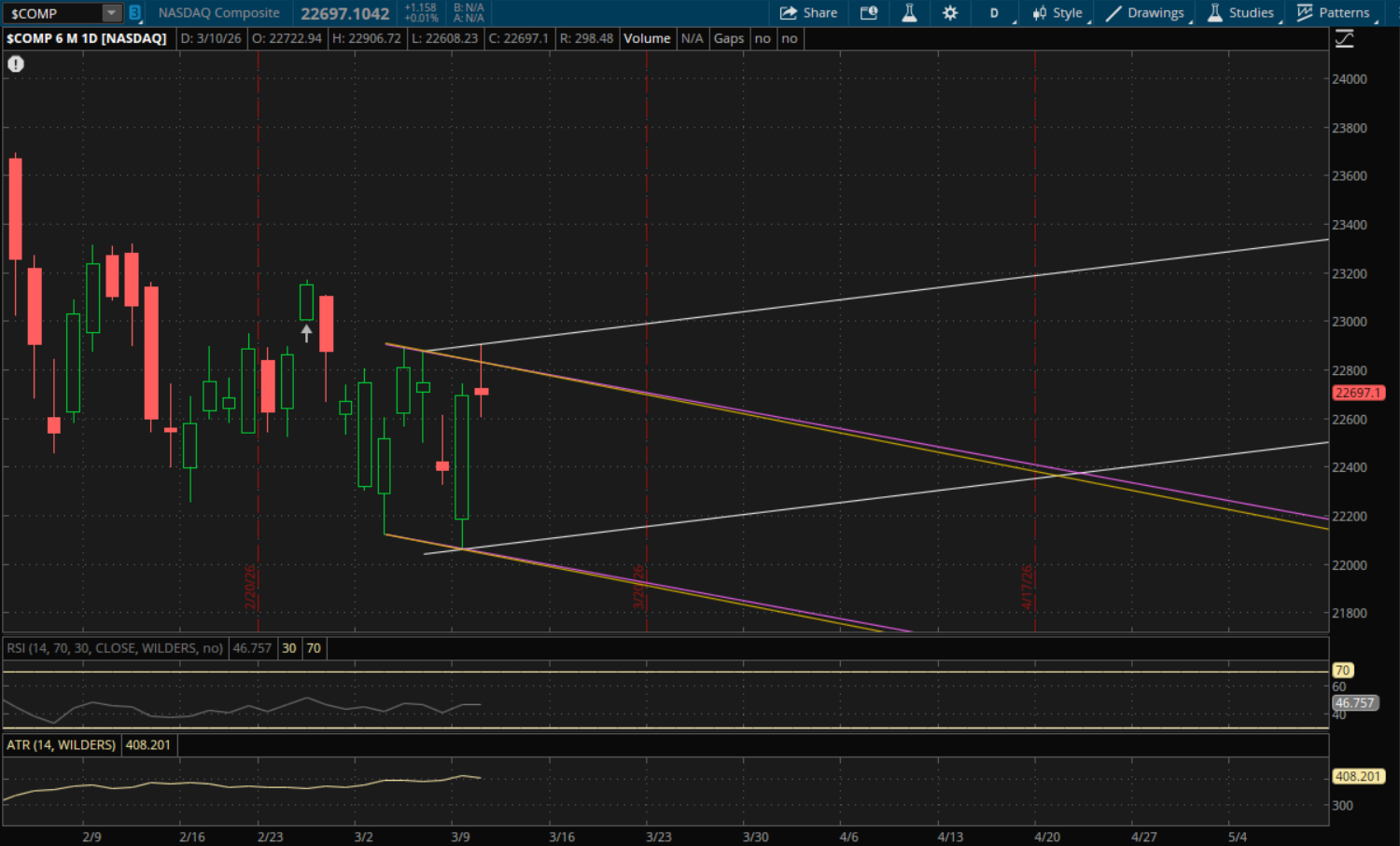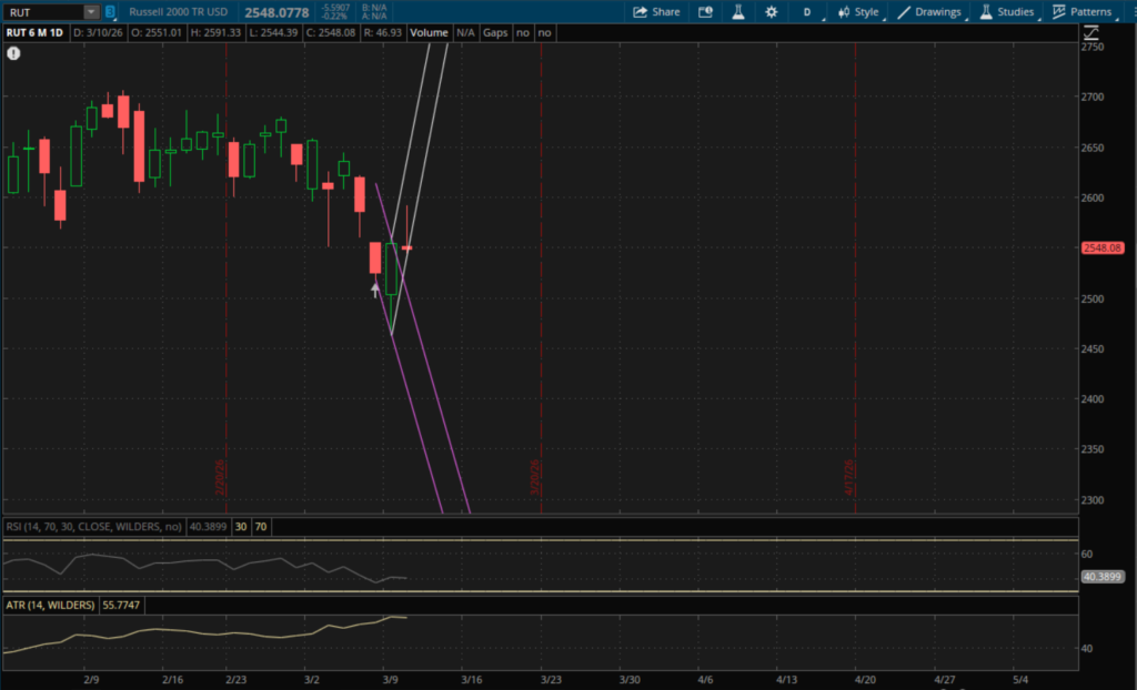 The markets were much calmer today and finished relatively flat with the Nasdaq closing virtually unchanged, up 0.01% while the Russell 2000 and S&P 500 fell 0.22% and 0.21%, respectively. They were higher most of the day but there was a headline in the afternoon that Iran was taking steps to deploy mines in the Strait of Hormuz which sent markets lower and oil higher a bit. However, oil still closed the session down 8.84%. During the market rally the VIX was down over 10%, but with the late day pullback in the markets it only closed down 2.24%. Tomorrow morning we will be getting month over month CPI data which will give us some more insight into the inflation front.