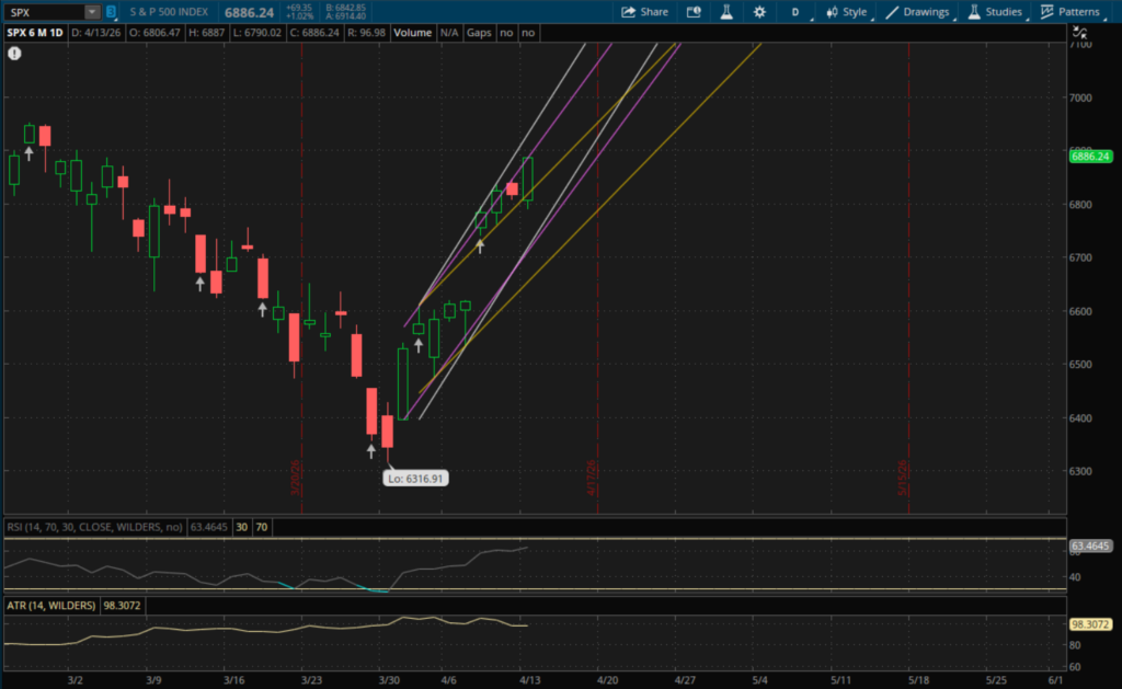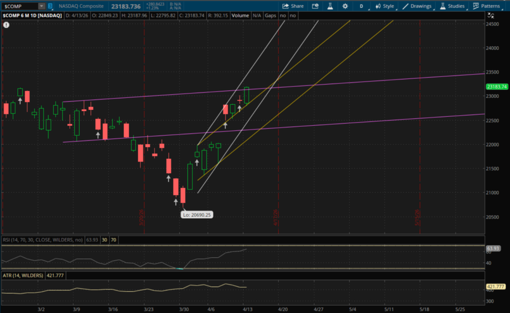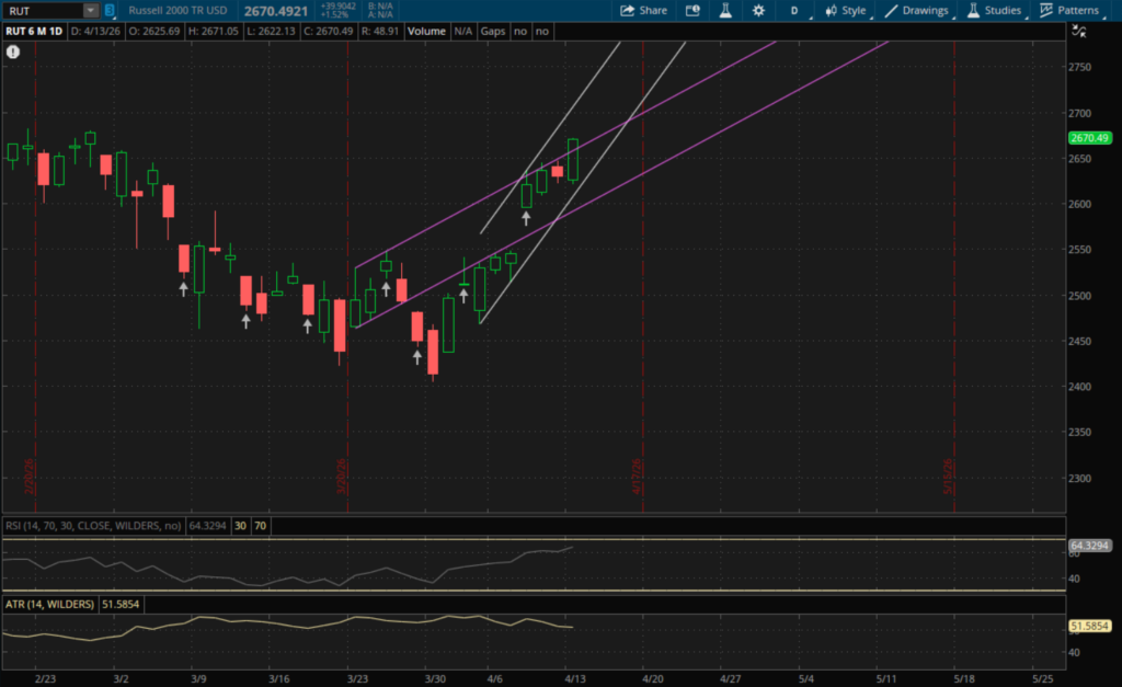 Futures gapped lower last night after peace talks failed between Iran and the US as President Trump announced a blockade of the Strait of Hormuz. This also sent oil sharply higher with it rallying over 10%. However, by the open most of the overnight losses had been reversed. Markets opened a little lower but quickly rallied and continued to rip higher into the close. The rally was led by small caps with the Russell 2000 closing higher by 1.52%. The Nasdaq closed up 1.23% and this is extended its win streak to 9 days. The S&P also added about 1% and is now less than 2% away from all time highs. Despite the rally in markets, the VIX finished relatively flat at $19.12 for a loss of 0.57%. While this wasn't much of a decline, it gapped up significantly and was up over 12% at the highs. So even though it wasn't a big decline for the day, it was still a very weak finish near its lows.