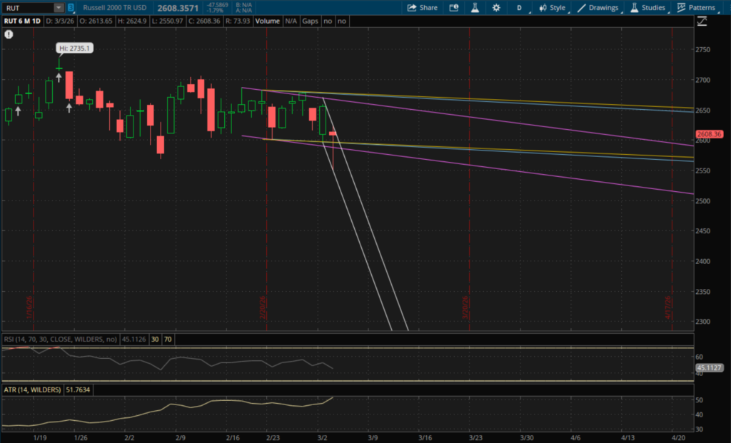 It was a bloodbath this morning with markets having their biggest one day sell-off since the 2025 tariff crash. The Russell 2000 was down nearly 4% at today's lows while the Nasdaq and S&P fell 2.7% and 2.5%, respectively. The VIX spiked just over 31%, hitting a high of $28.15, its highest levels since last November. Markets did recover well off of their lows, but they still posted significant losses for the day. The Russell 2000 closed down 1.79% while the Nasdaq closed down 1.02% and the S&P lost 0.94%. The VIX closed up about 10% after the markets recovered. Metals also pulled back with gold falling about 4% and silver falling over 7%.
