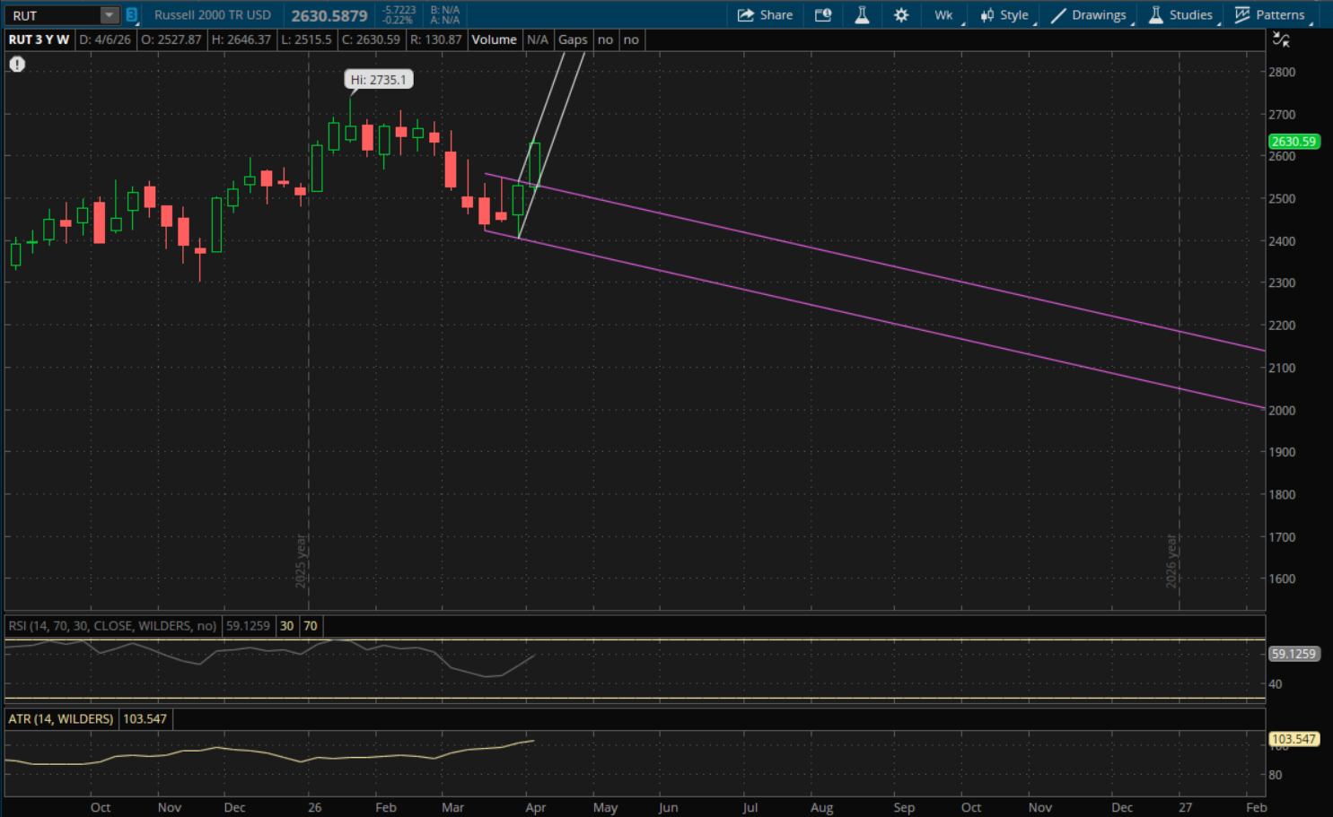 The markets finished strong again this week with tech leading as the Nasdaq closed up 4.7% for the week. Small caps also posted a strong weekly gain with the Russell 2000 closing up about 4% while the S&P added 3.6%. These were strong back-to-back weekly gains for the markets as they are well off of their lows. The VIX also got crushed as it lost 19.4% for the week. Earnings season will kick off next week with big banks beginning to report. J.P. Morgan, Goldman Sachs, Citigroup, Bank of America, and Wells Fargo will all report next week. Aside from the Iran war, these earnings will be the biggest catalyst for the markets and especially financials.
