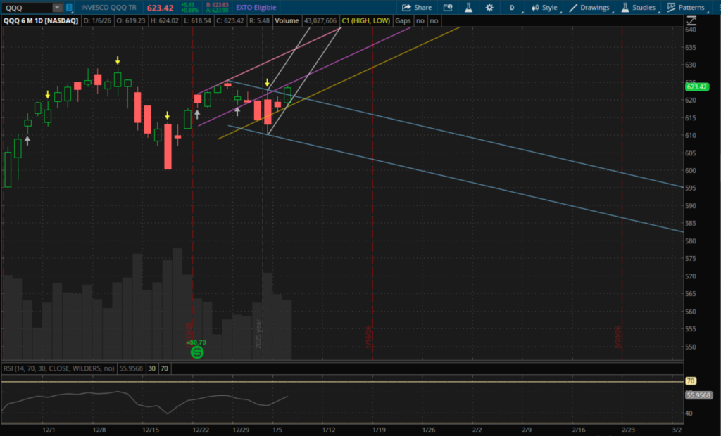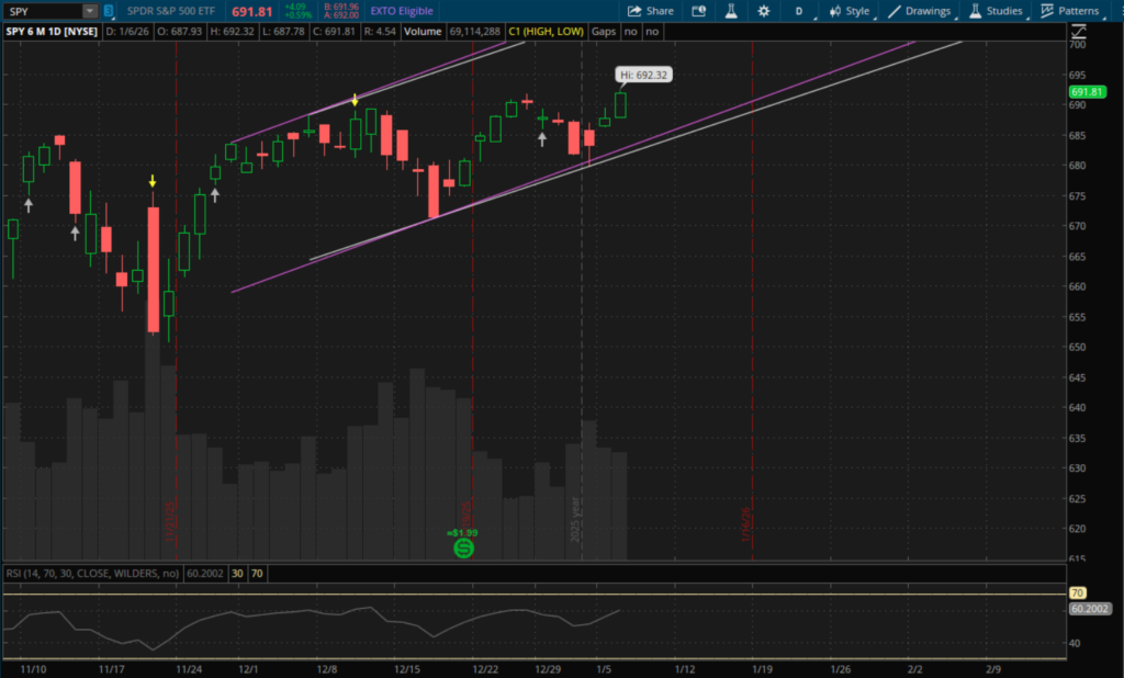 Lastly, for SPY nothing really changed today. It confirmed the failed breakdown yesterday and it remains in the same 2 daily uptrends from the failed breakdown on January 2nd.