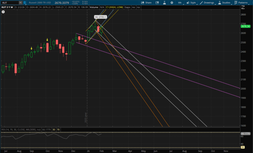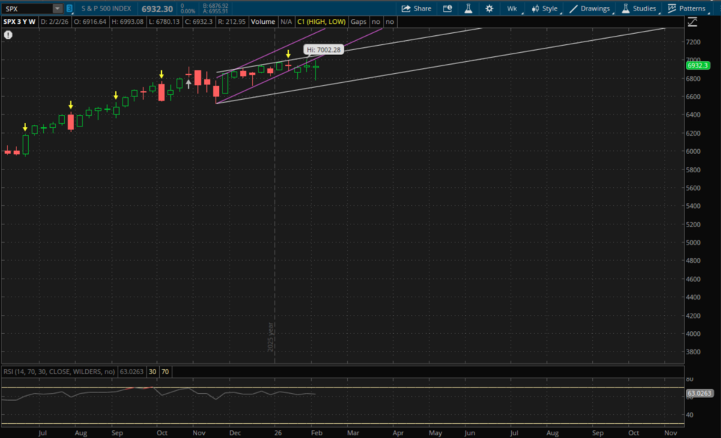 The Nasdaq lagged this week as it posted a loss of 0.9% while the Russell 2000 gained 2.1% and the S&P finished roughly flat with a decline of 0.1%. Markets have continued to rotate out of tech, especially software and mega caps. Meanwhile RSP, the equal weight S&P ETF, reached new all time highs. Before Friday's big rally back in markets, the VIX hit a high of $23.10, its highest level since last November. It has since come back down, but is still elevated at $17.76. Most of the big tech earnings are now out of the way with NVDA left to report on February 25th. The January employment situation (jobs report) that was supposed to be released yesterday morning got delayed due to the partial government shutdown. The BLS rescheduled the release of this data for this Wednesday, February 11th. So this will be the big data catalyst for the week to watch. We will also be going into a 3 day weekend with markets closed the following Monday, February 16th, for President's day.