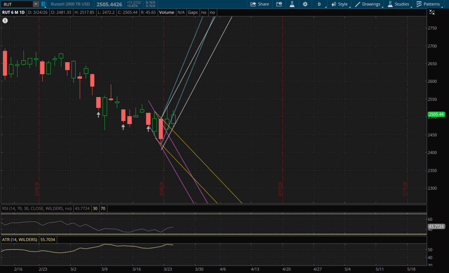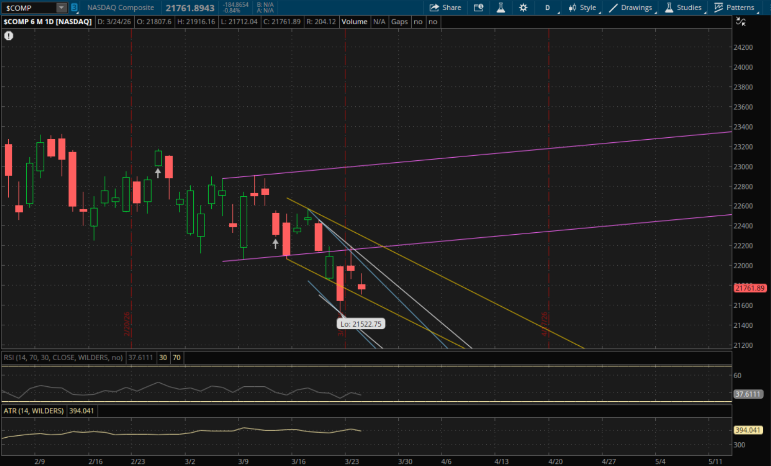 Markets mostly closed lower today with tech lagging significantly as the Nasdaq closed down 0.84%, although semiconductors were a bright spot within overall tech as the SOXX closed up 1.3%. The S&P also closed lower by 0.37% meanwhile small caps were the standout leader with the Russell 2000 finishing higher by 0.45%. After the market closed there was news from Israeli Channel 12 that a one-month long ceasefire was being discussed between Iran and US negotiators. Markets are rallying on this news after hours with small caps up about 1.3% while the Nasdaq and S&P are up about 0.7%. We'll have to see if this after hours action holds into tomorrow's open.