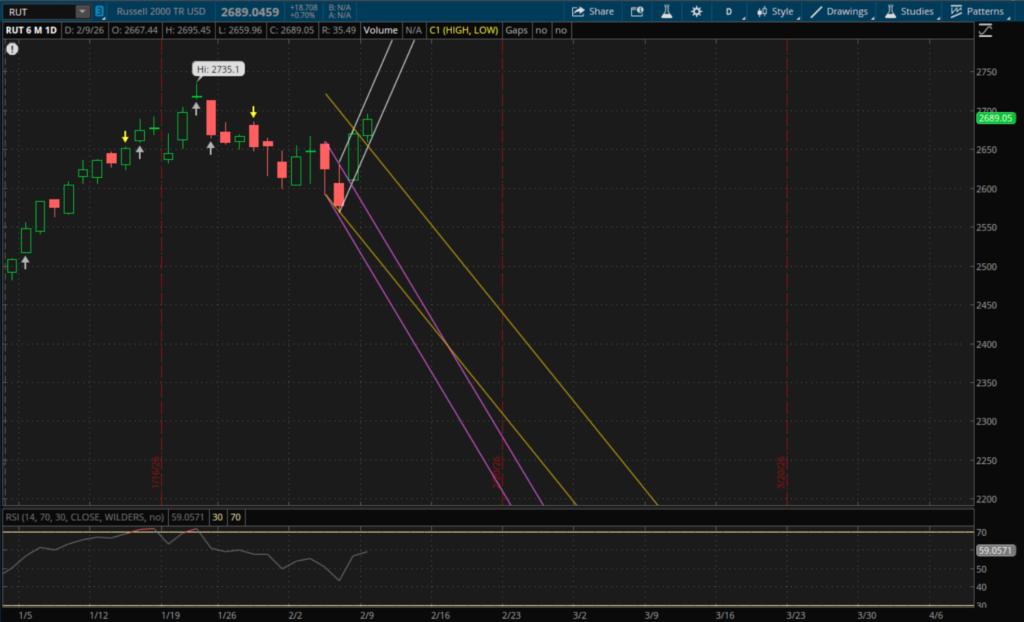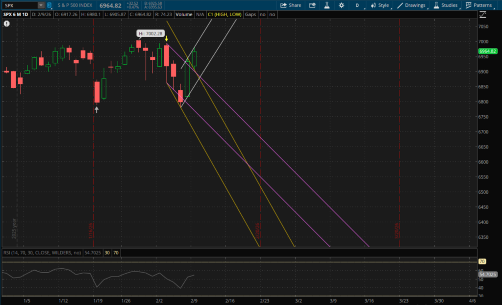 The S&P opened above its last downtrend resistance around 6,903 that I mentioned in the previous daily update. It did pullback to retest this area which held early in the morning as the S&P put in a low of 6,905.87 and continued to push higher. Since it closed above its last downtrend, it now starts a new uptrend (white) on the daily which it almost tested today. The resistance from the new uptrend for today was at about 6,981-6,982 and it got up to 6,980. Resistance from this new uptrend will be higher tomorrow at about 7,020. On the other hand, if we do get a pullback tomorrow then the 6,890 level will be the first big support to watch will also be from this new uptrend. After that, its prior downtrends will come into play again with supports at about 6,875 (purple) and 6,862 (yellow).